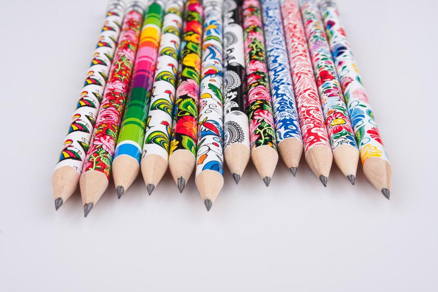 - ludowy ołówek zachwyca niezwykle żywą, łowicką gamą kolorów