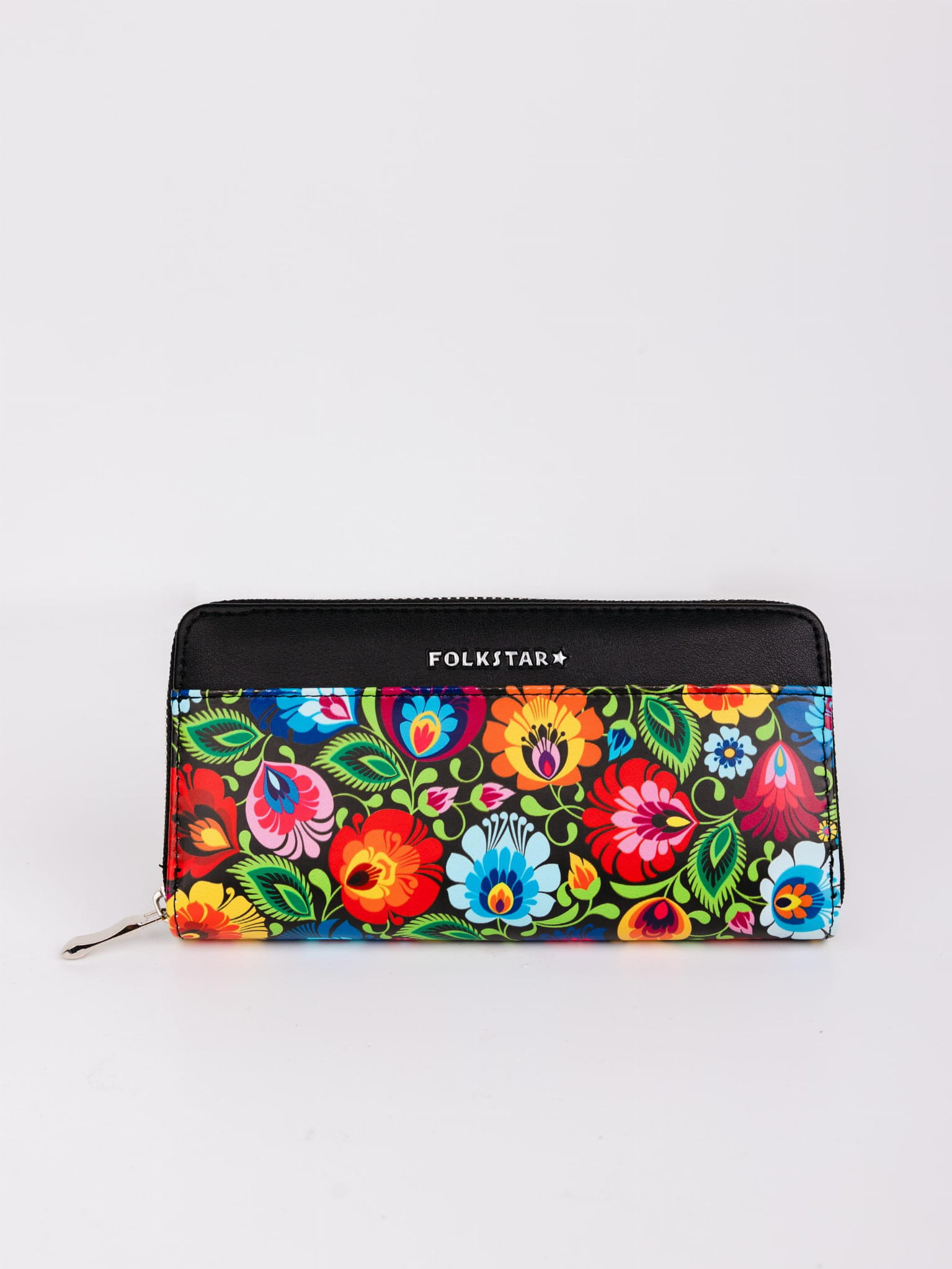 Damski portfel folk łowicki czarny