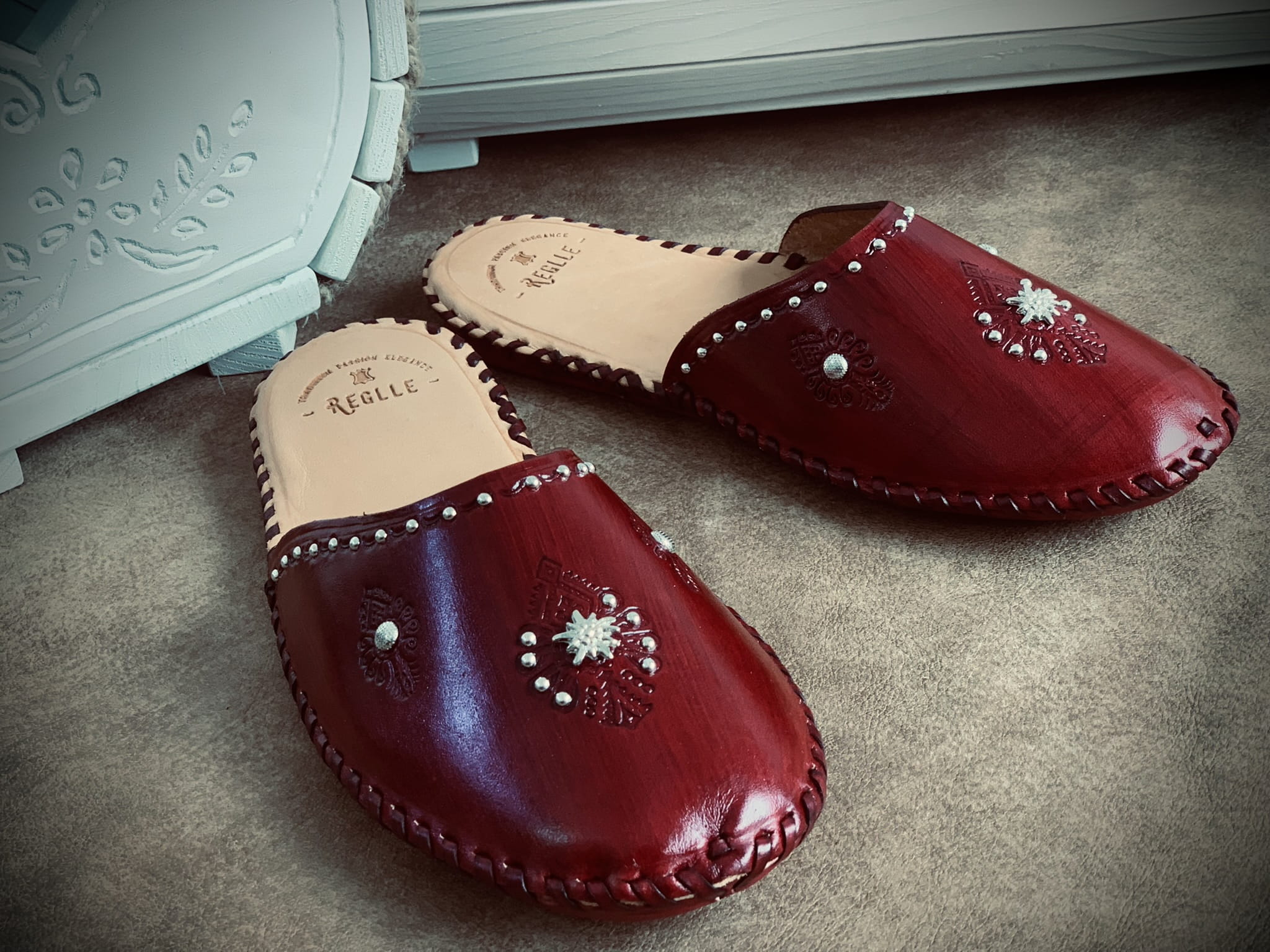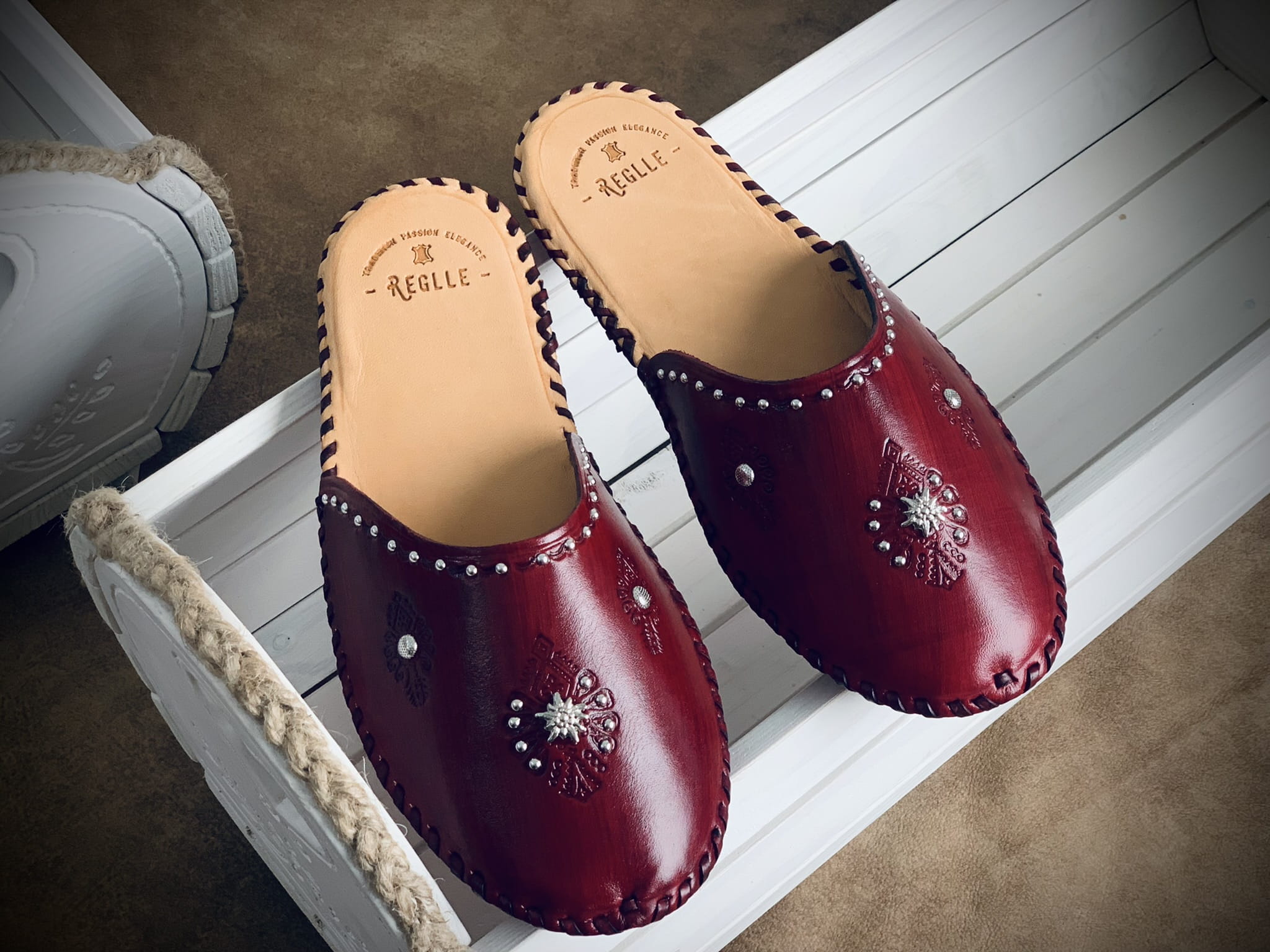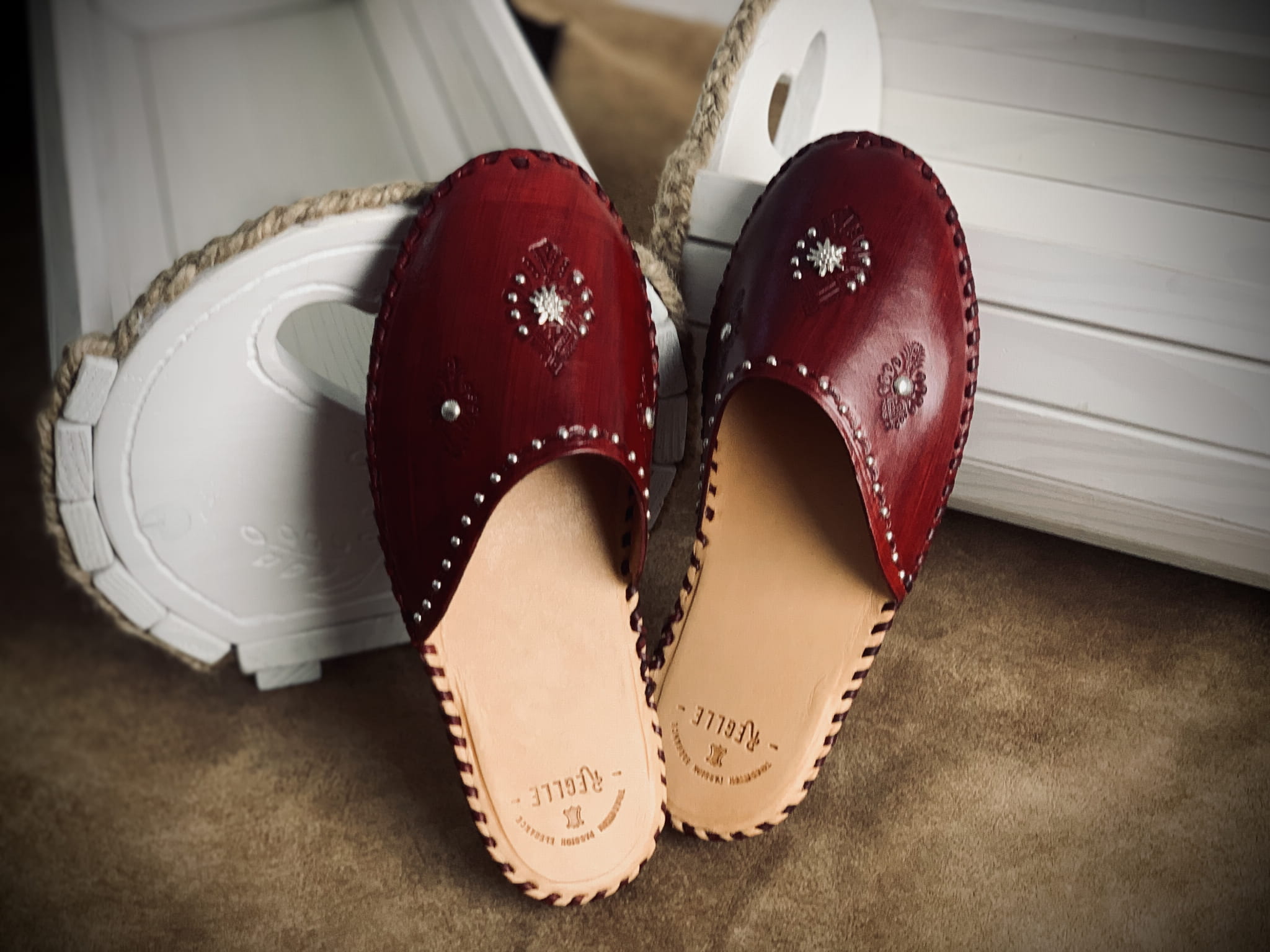 Model wykonano z naturalnej skóry licowej, co pozwala zachować odpowiednie właściwości higieniczne i estetyczne. Tradycyjne góralskie pantofle szyte ręcznie skórzanym rzemieniem to propozycja dla osób ceniących solidne wykonanie i sprawdzone rozwiązania.