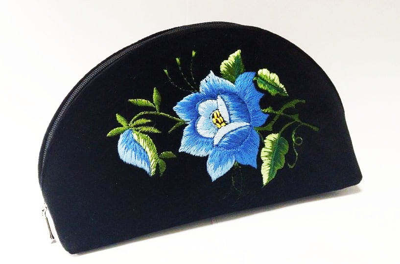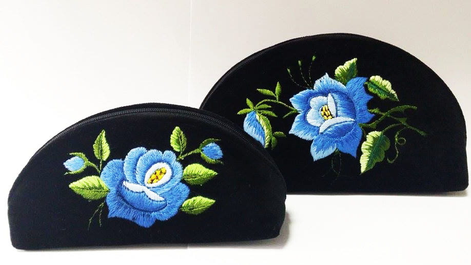 Duża haftowana torebka kosmetyczka niebieska łowicka róża