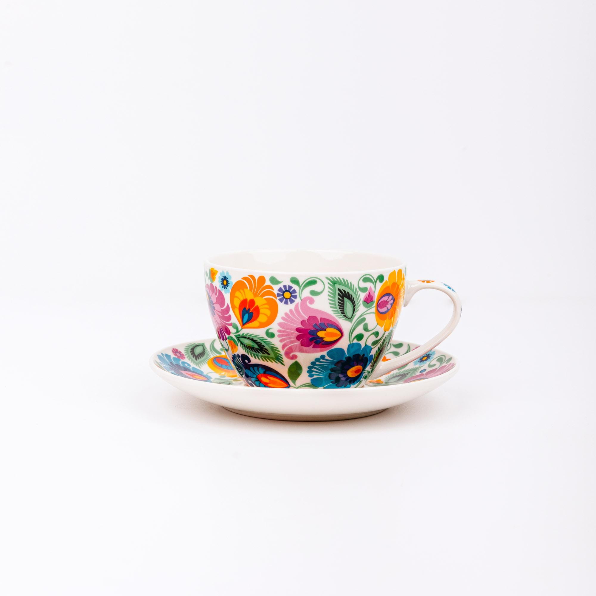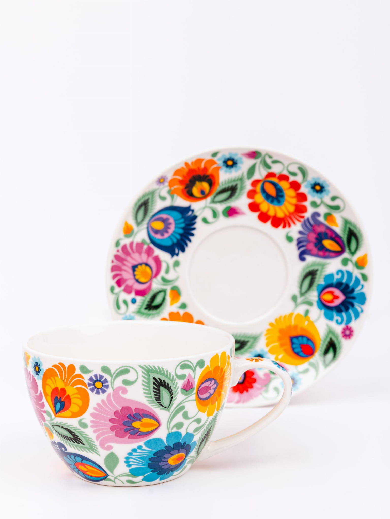 Folk filiżanka ze spodkiem Małgosia łowicka biała