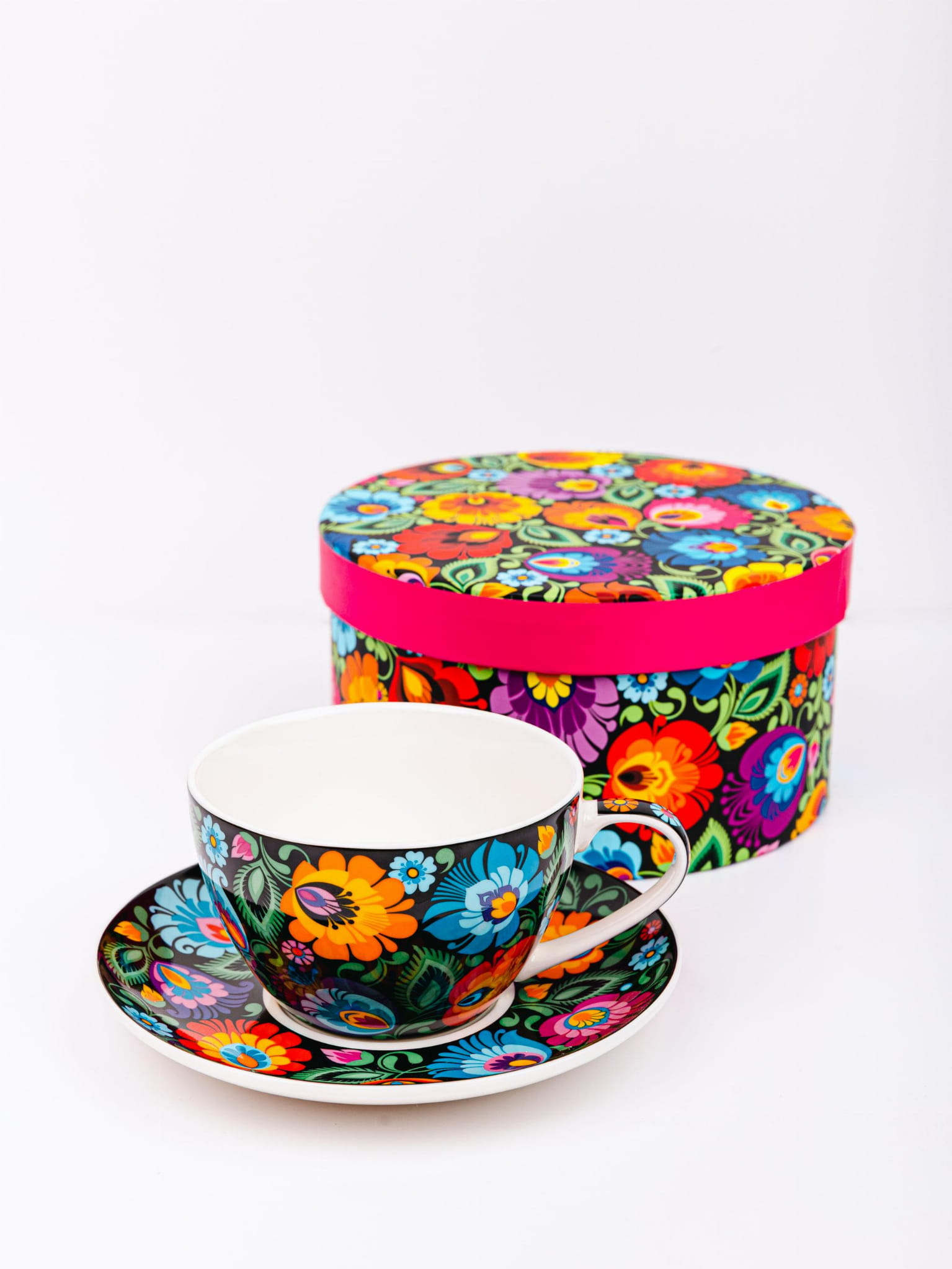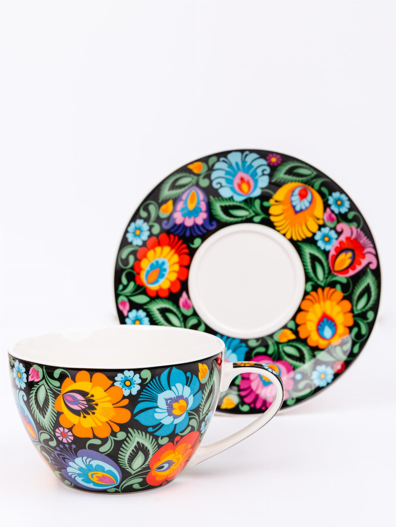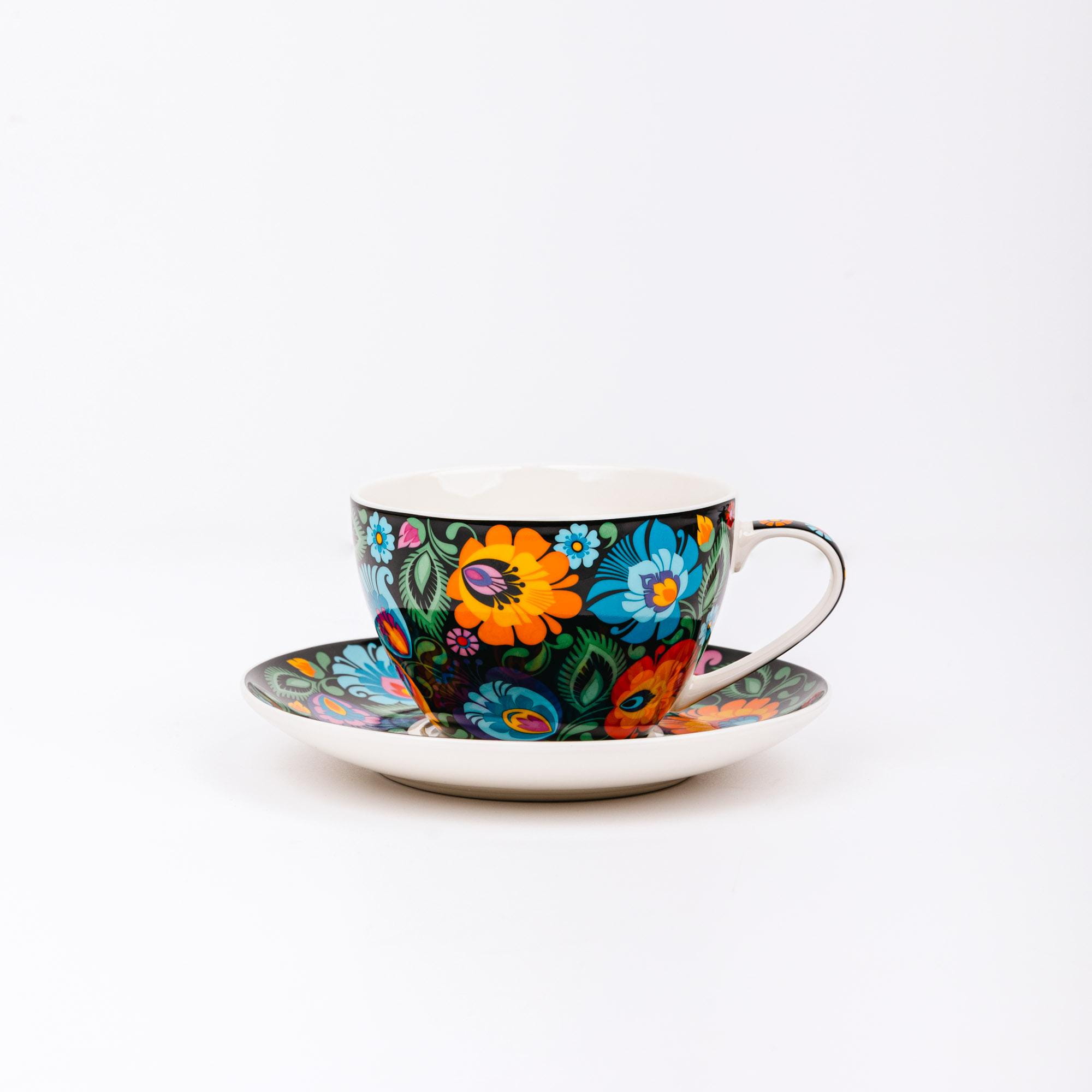 Folk filiżanka ze spodkiem Małgosia łowicka czarna