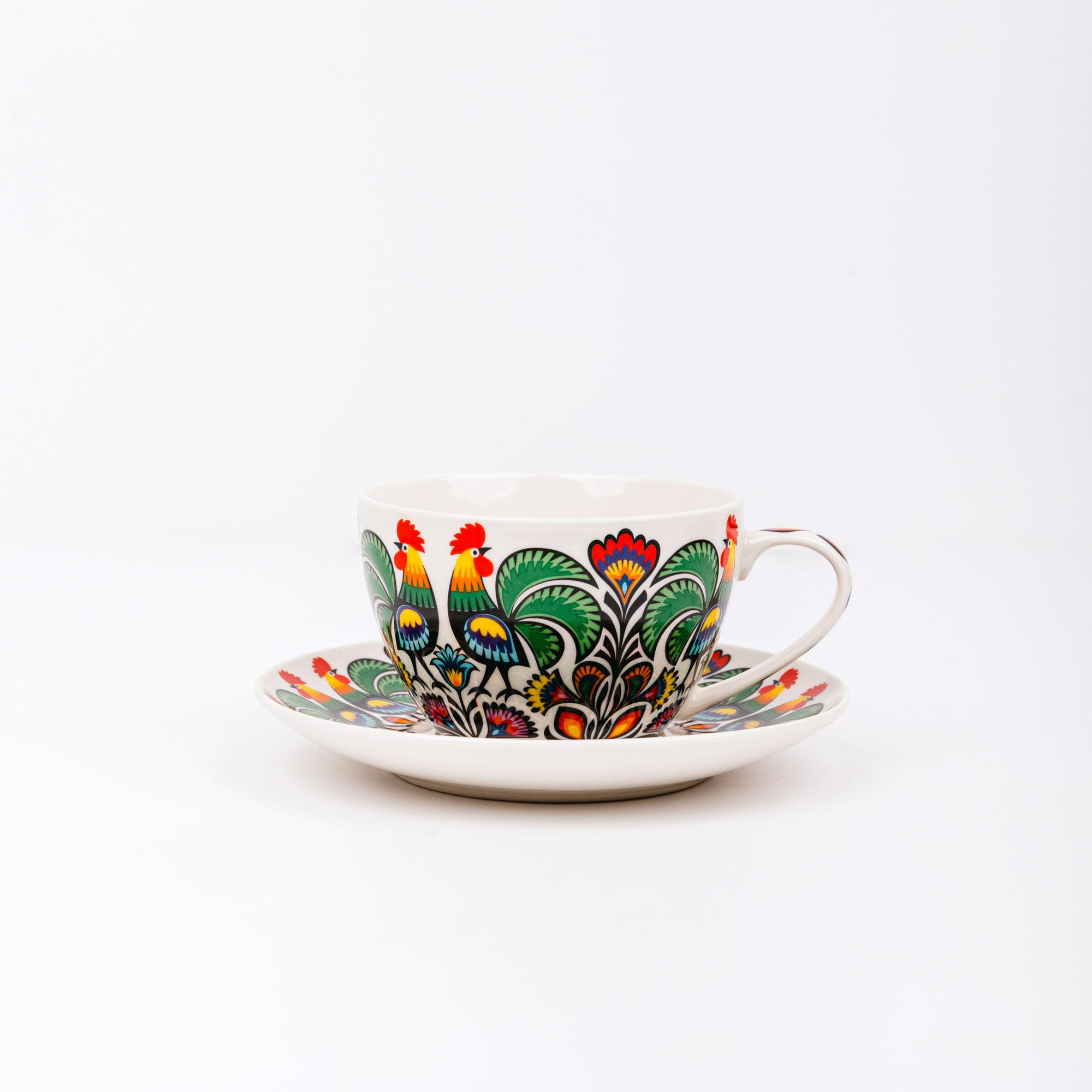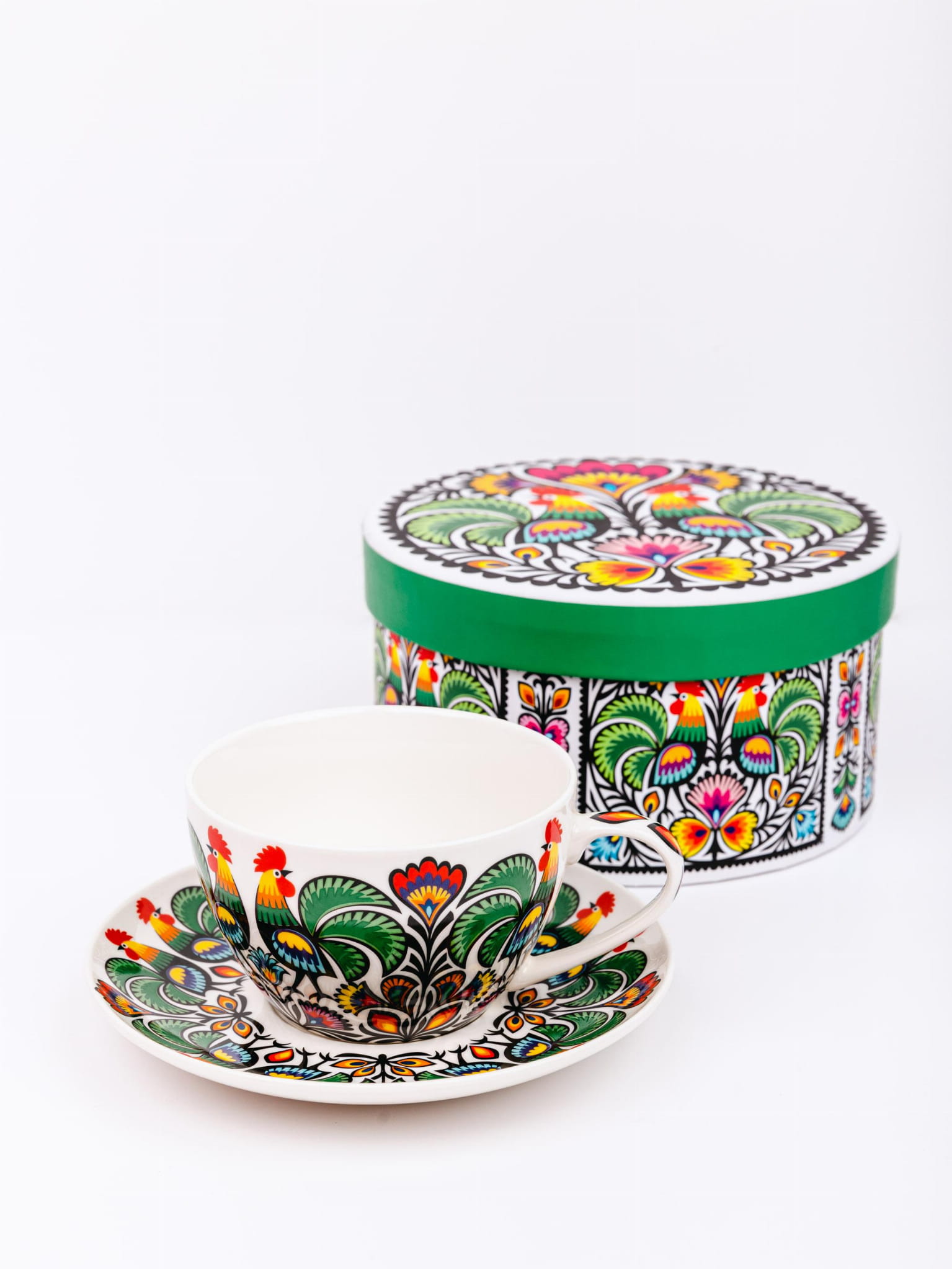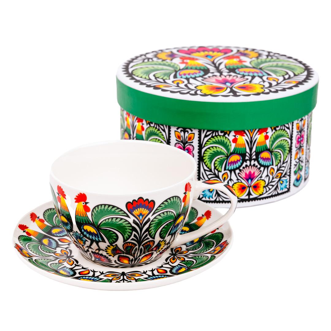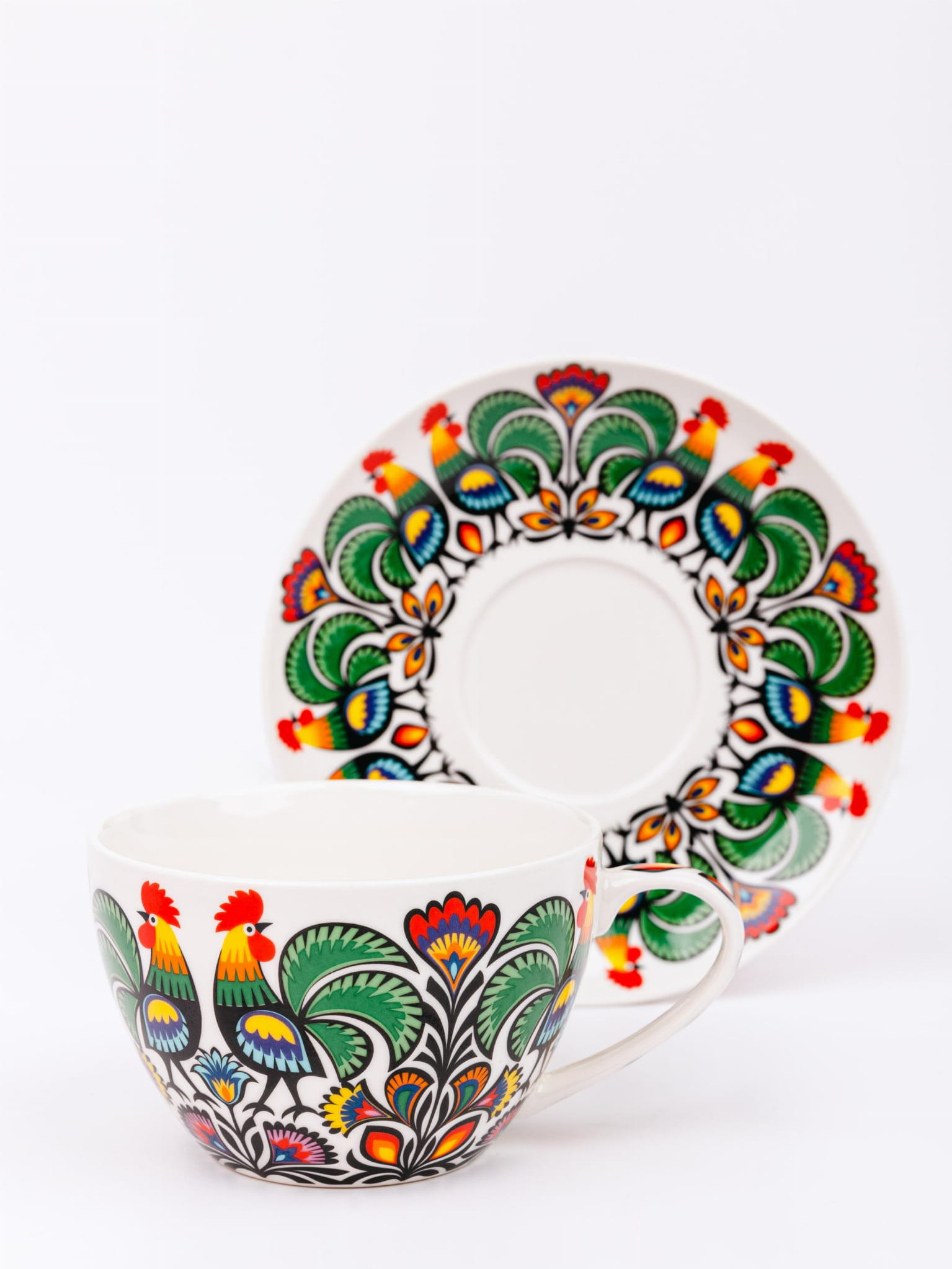 Folk filiżanka ze spodkiem Małgosia wycinanka łowicka