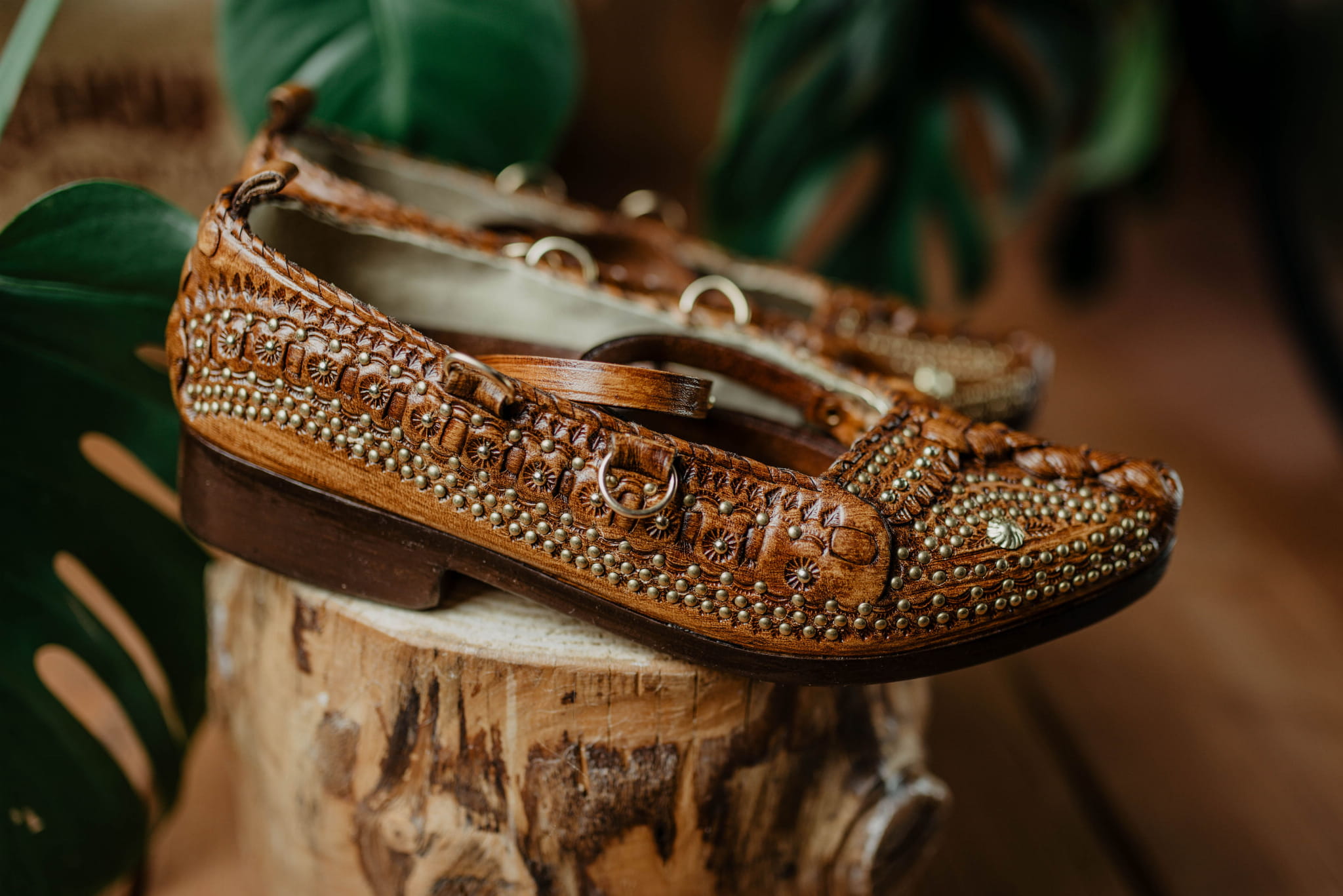 Kierpce skórzane góralskie zelowane z ćwiekami