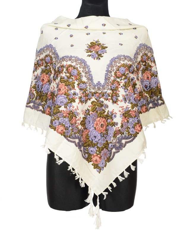 Kremowa chusta w liliowe kwiaty