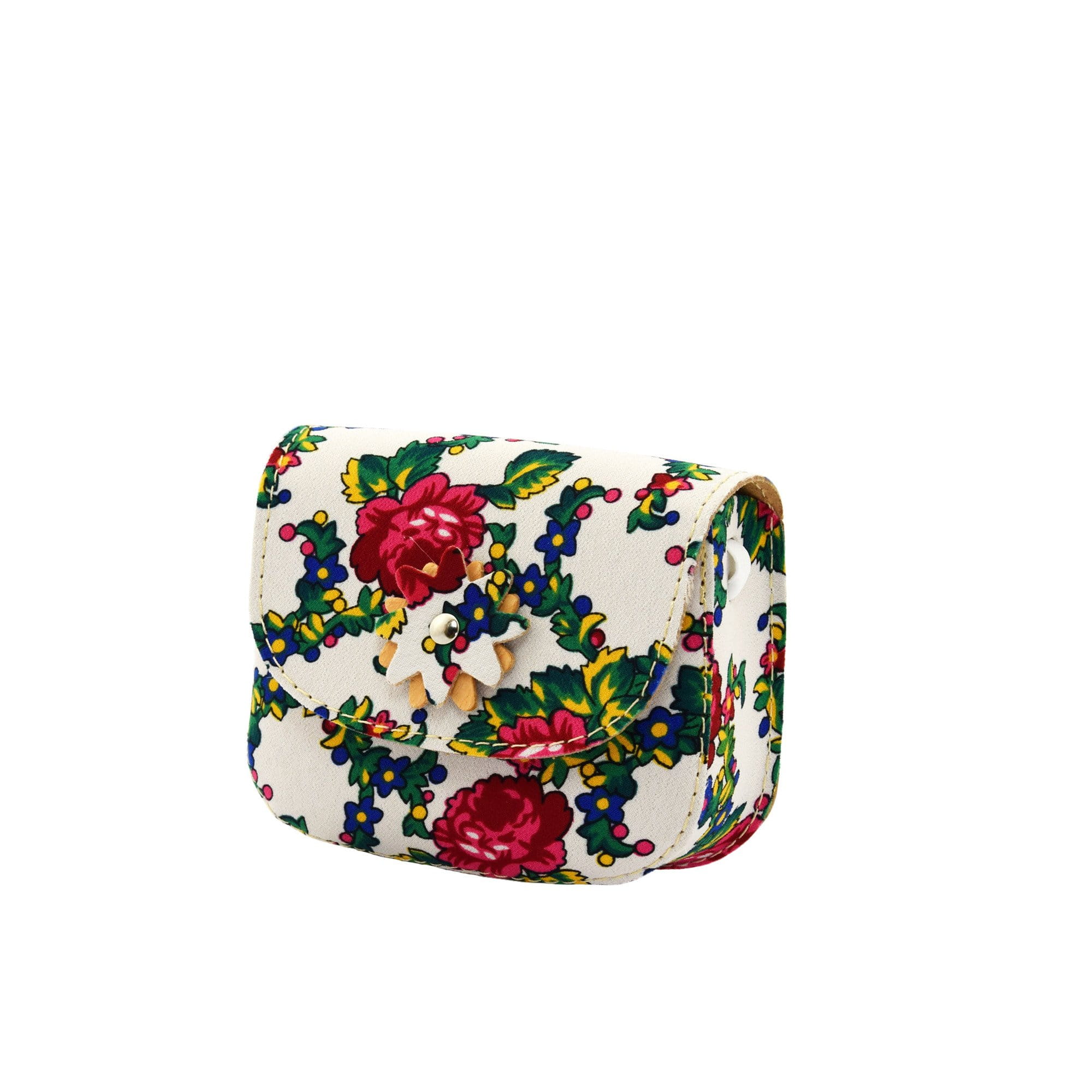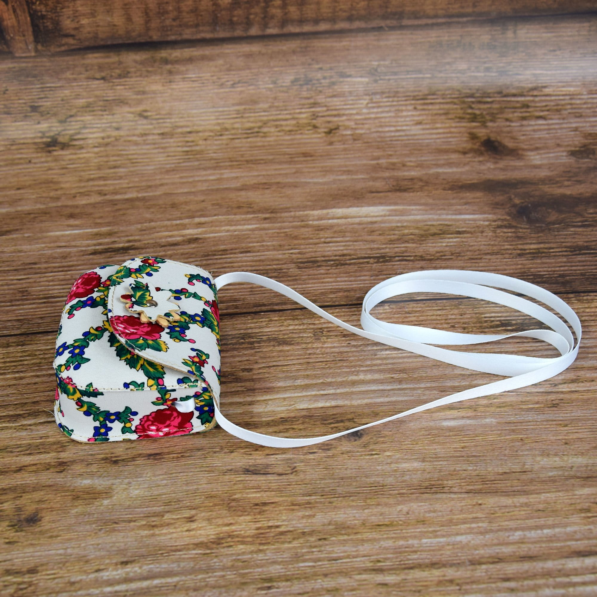 Torebka góralska obszyta materiałem folkowym. Zamykanie na zatrzask. Możliwość regulacji długości paska. Idealny dodatek do ubrań typu Folk. Idealna dla dziewczynek