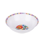 Miska łowicka mała idealna na śledzika, sałatkę lub ziemniaczki. Wszystko co ugotujesz na folk miseczce pięknie zaprezentujesz. Miska łowicka mała to dodatek niezbędny w Twojej kuchni, a także uzupełnienie folkowego zestawu obiadowego. Dostępna w trzech rozmiarach – kompletuj, jak chcesz.