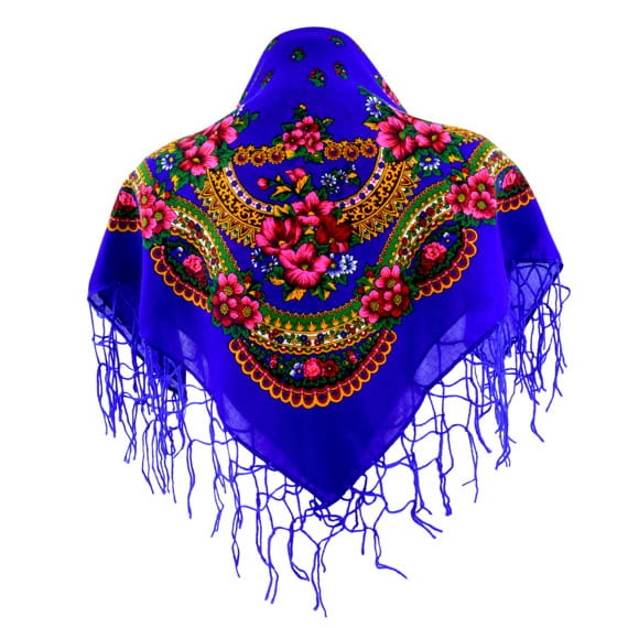 Mała tradycyjna ludowa chusta frędzle 70 x70 cm chabrowa