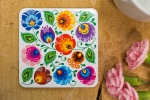Podkładka korkowa folk kwiaty łowickie biała
