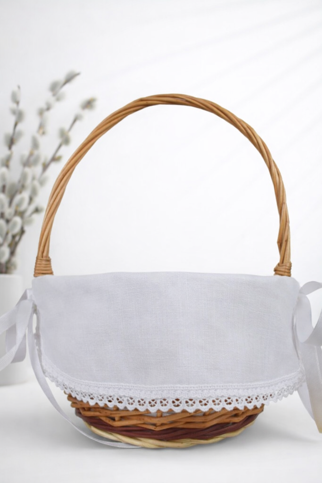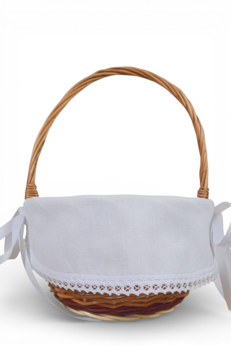 Klasyczna i elegancka serwetka do koszyczka wielkanocnego zdobiona . Serwetka z wiązaniami po bokach. Idealna dla osób ceniących tradycję i subtelne zdobienia. Wykonana z wysokiej jakości bawełny, ozdobiona delikatną bawełnianą koronką, która dodaje jej wyjątkowego uroku.