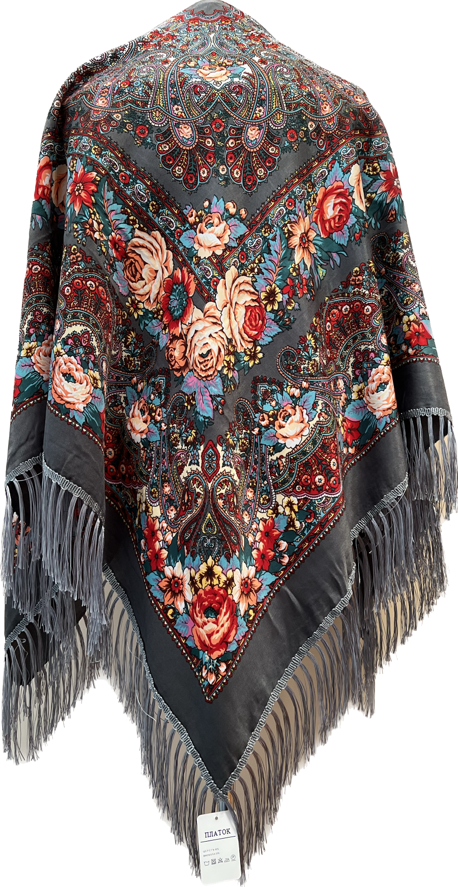 Słowiańska tradycyjna chusta 130x130 wełna szara