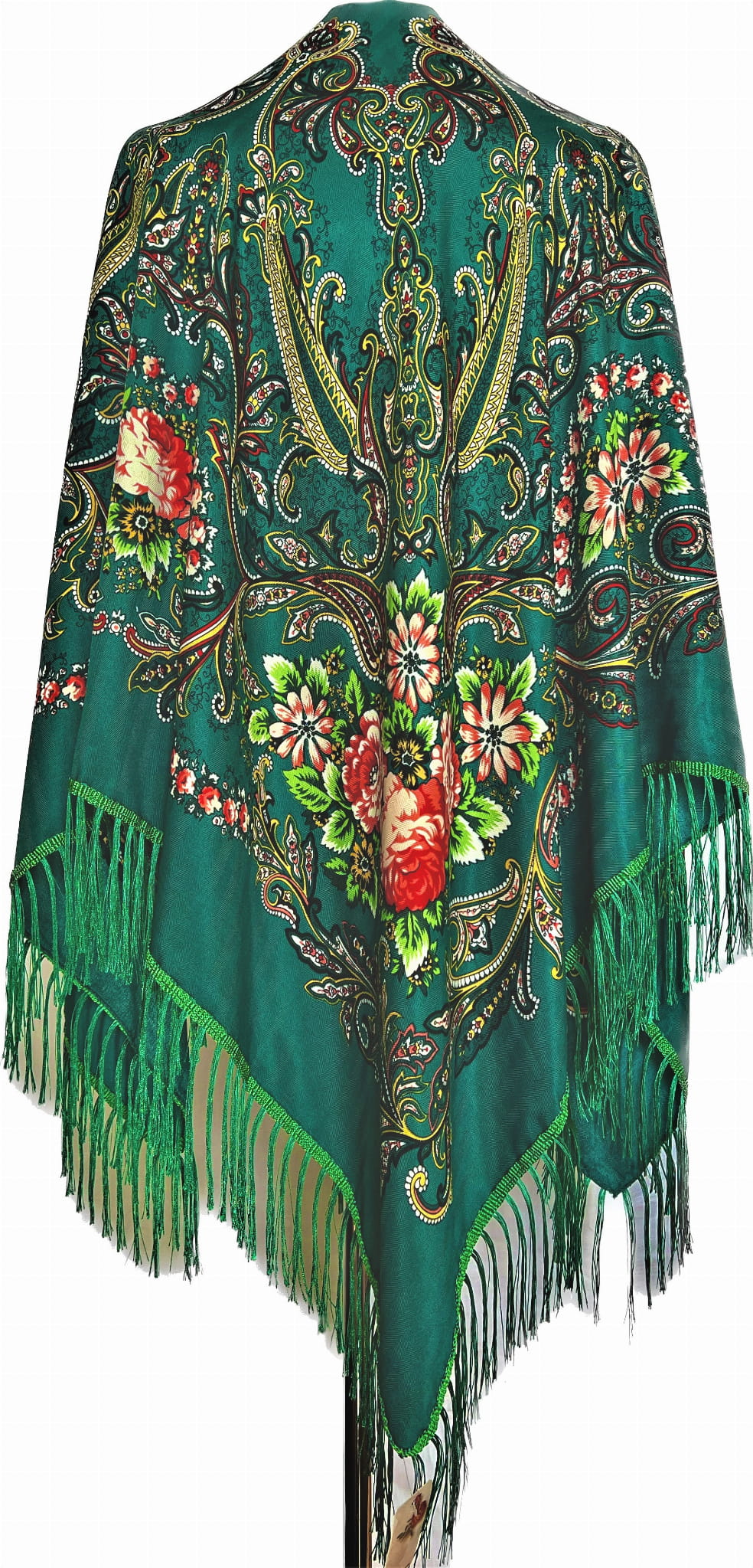 Słowiańska tradycyjna chusta 130x130 wełna zieleń