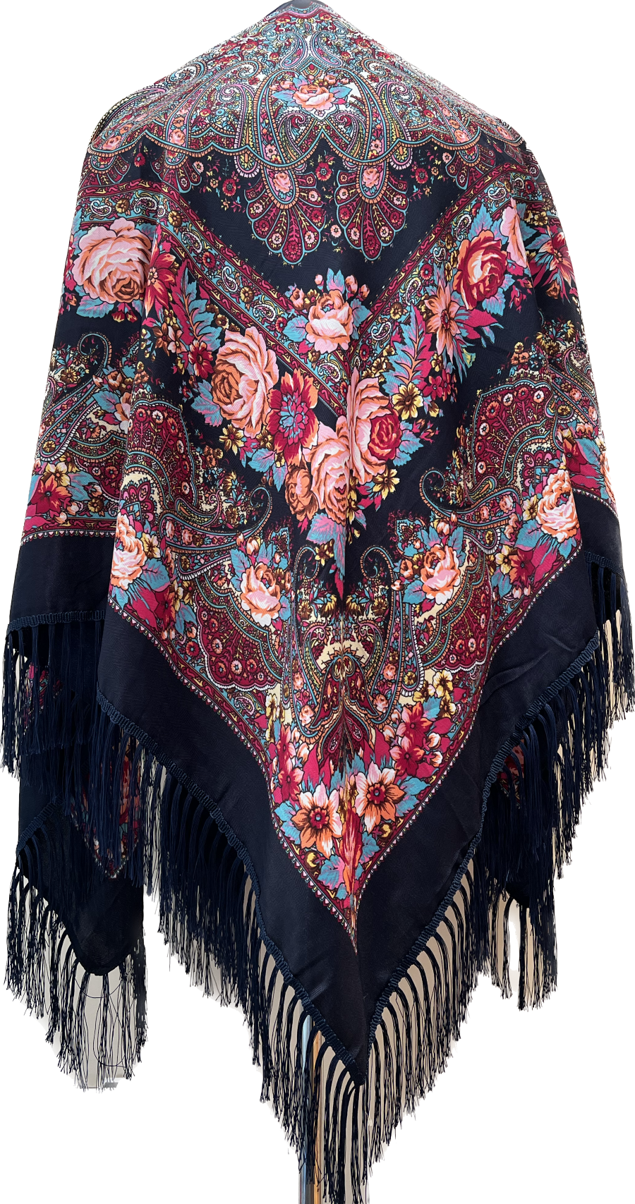 Wełniana chusta w kolorowe kwiaty i wzory nawiązujące do słowiańskiej tradycji sprawiają, że jest to idealny dodatek do Twojej garderoby, który podkreśli Twój styl i indywidualność.