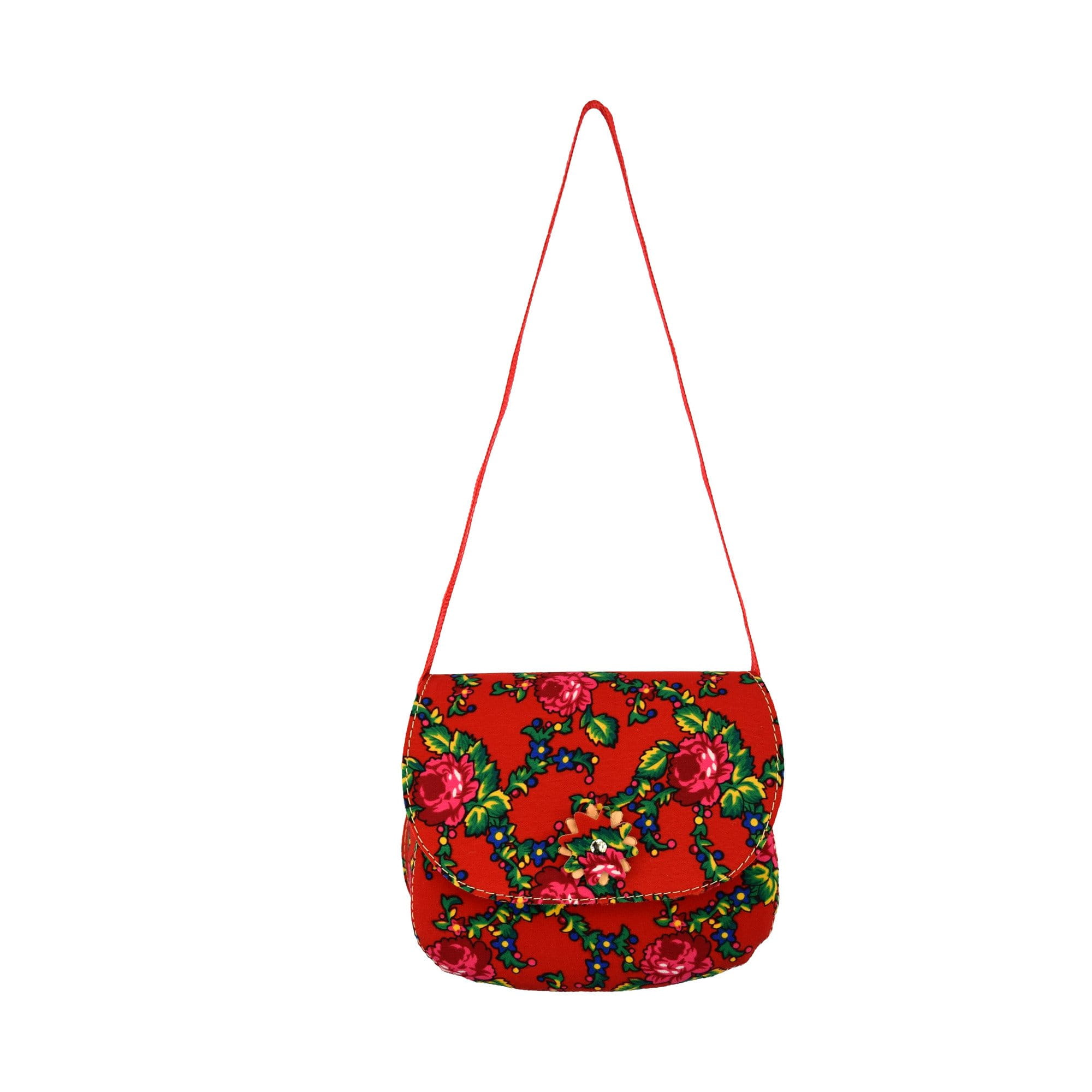 Średnia ludowa torebka kwiaty góralskie czerwona