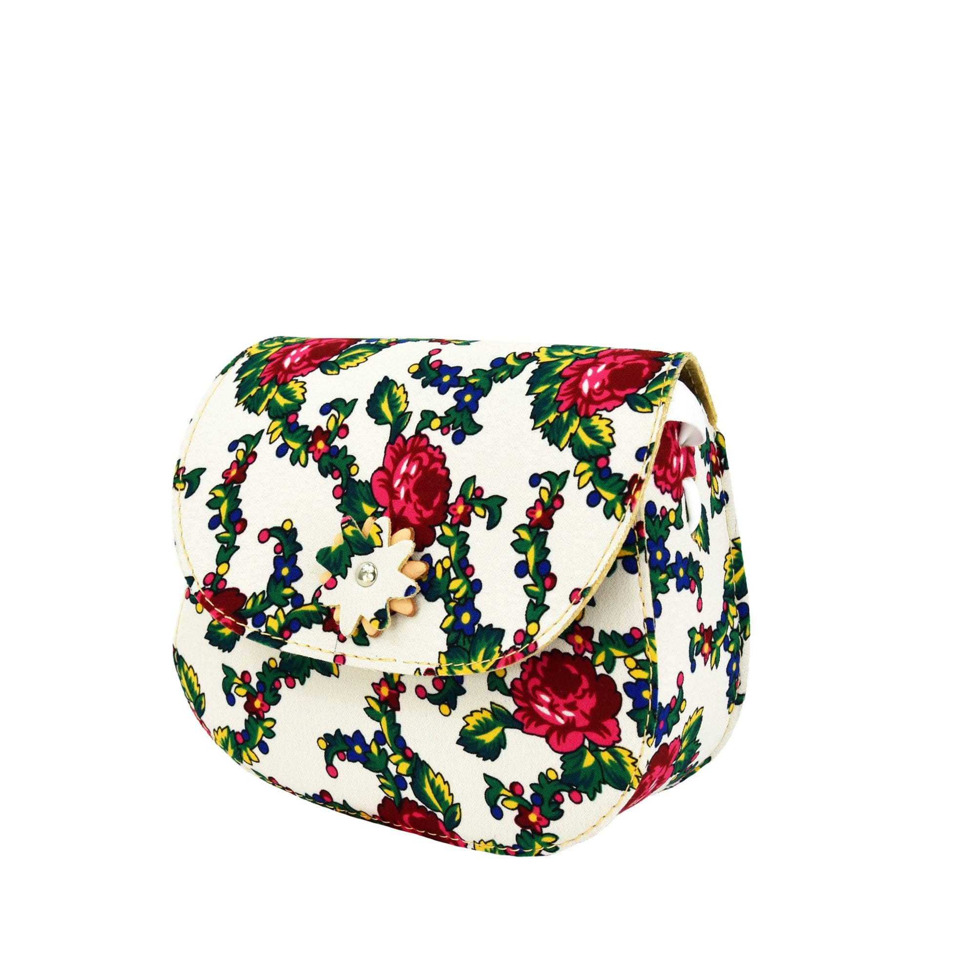 Średnia ludowa torebka kwiaty góralskie ecru