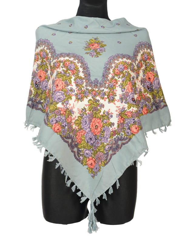 Szara chusta kwiaty folk