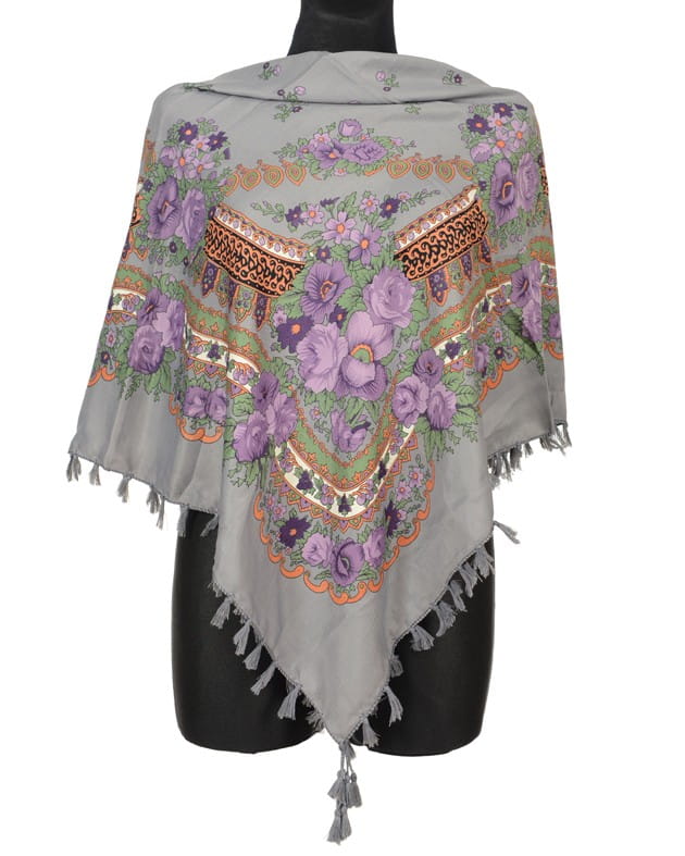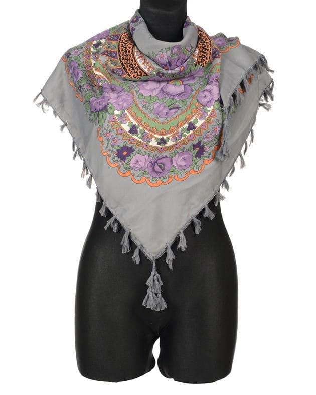 Szara chusta w kwiaty folk