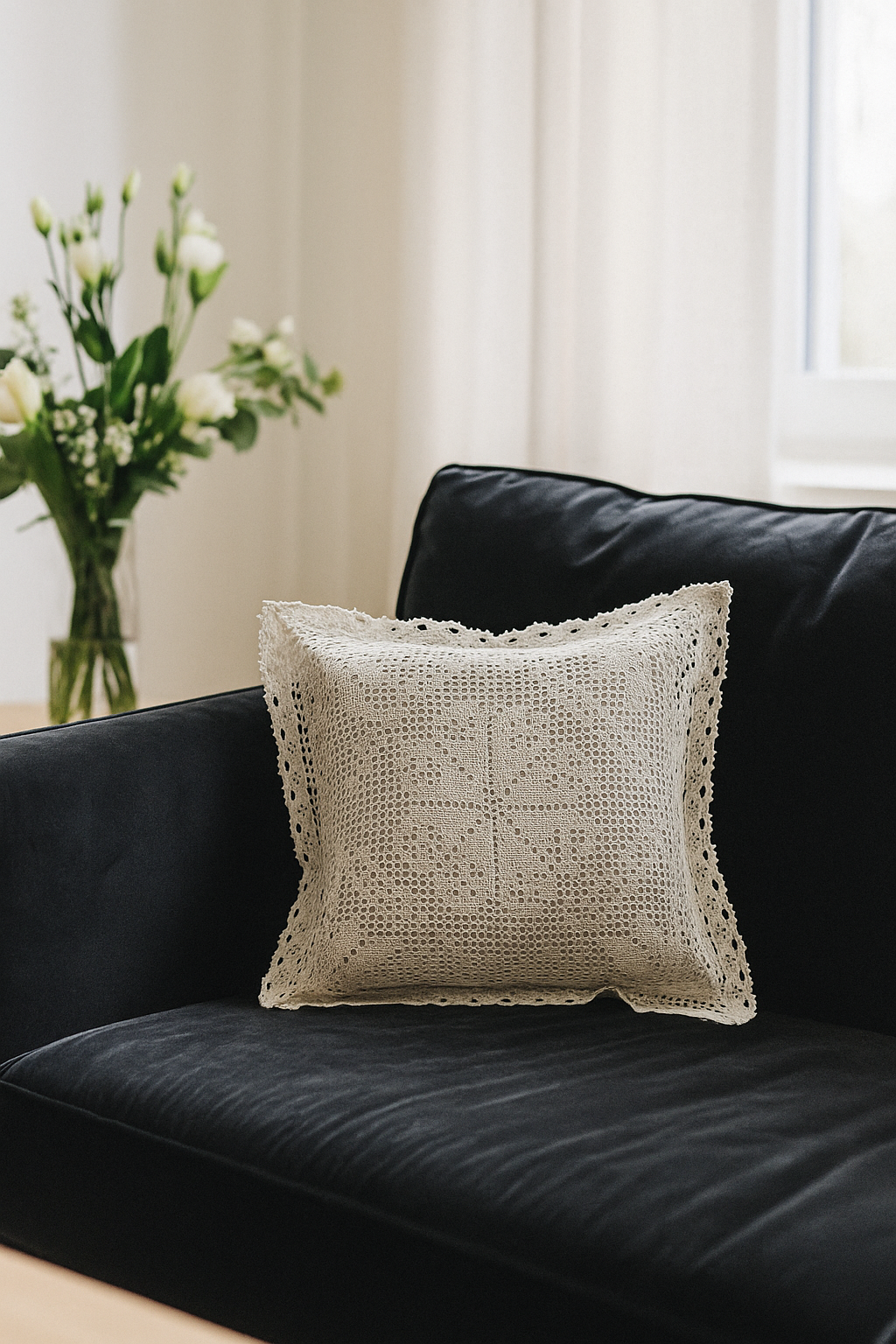 Wprowadź do swojego wnętrza subtelny akcent romantycznego stylu dzięki eleganckiej poszewce dekoracyjnej o wymiarach 40 x 40 cm. Wykonana z wysokiej jakości tkaniny (80% bawełna, 20% poliester), zachwyca delikatnym, ażurowym wzorem koronki, który podkreśla jej wyjątkowy charakter.