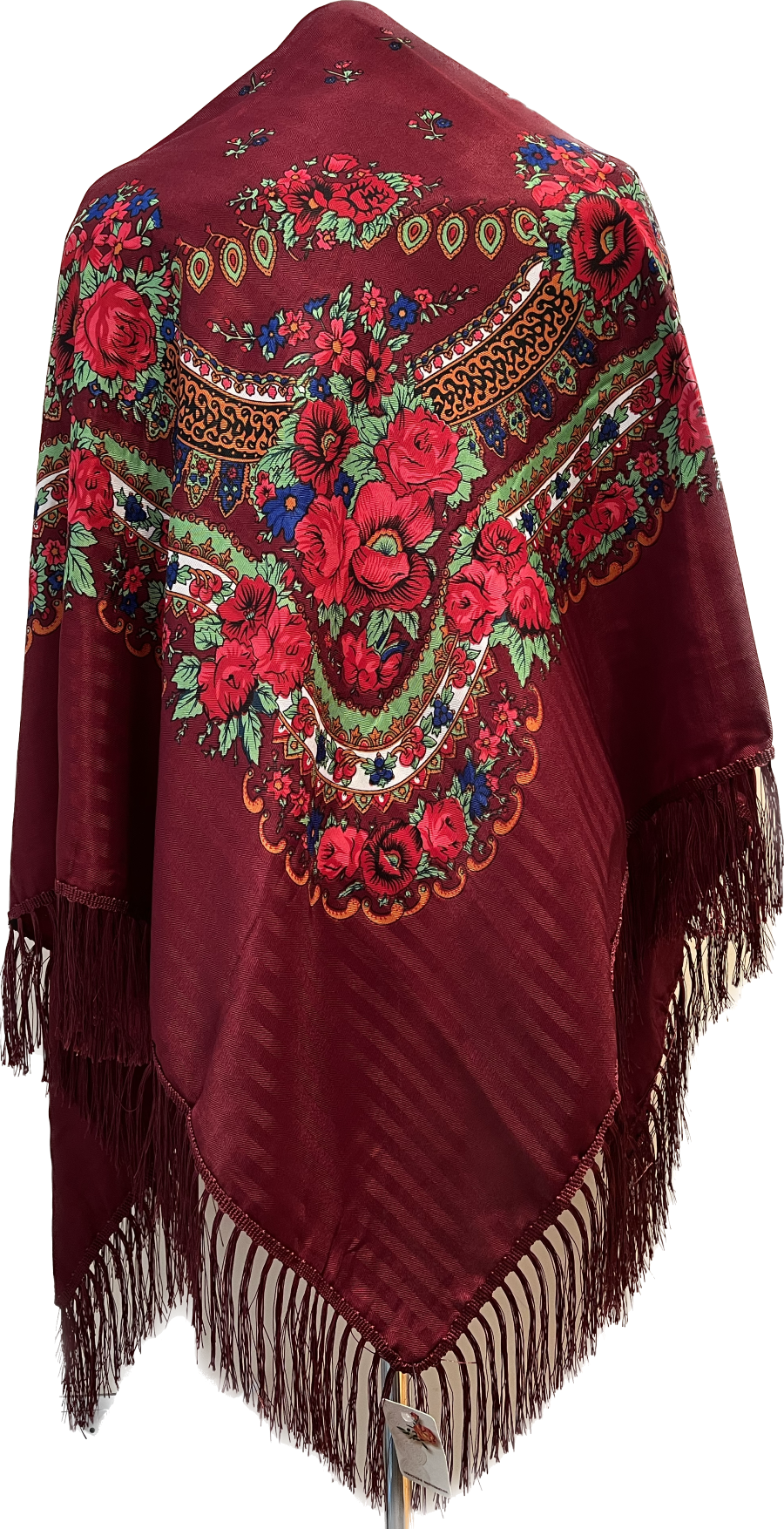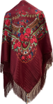 Tradycyjna chusta w kwiaty 130x130 wełna bordowa