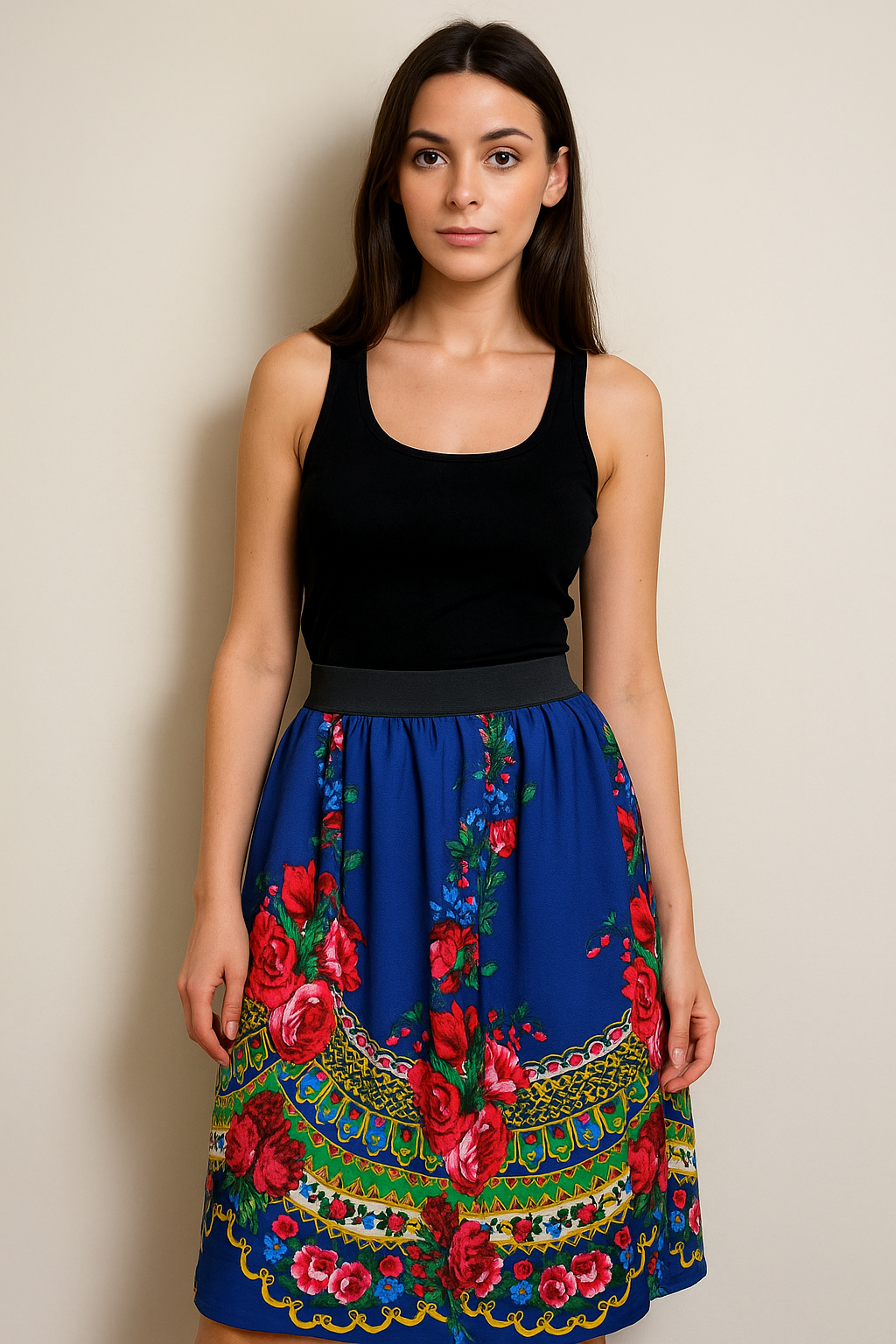 Spódnica wykonana z przepięknej tkaniny regionalnej, wzór góralski. Posiada podszewkę. W pasie guma, umożliwiająca idealne dopasowanie do sylwetki. Zaprojektowana i uszyta w Polsce, z dbałością o detale i najwyższą jakość szycia. Idealna do noszenia w formie tradycyjnej jak i do nowoczesnych miejskich stylizacji.