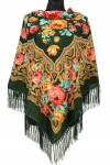 Wzorzysta tradycyjna chusta 130x130 zieleń